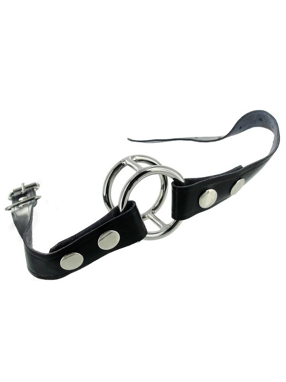 Ce b?illon en forme de double anneau sp?cialement con?u pour du « gorge profonde » se compose d’acier inoxydable et de fines extr?mit?s?en m?tal?poli. C’est un m?lange sexy et unique entre un?b?illon et une araign?e de bouche. Les anneaux en acier?ont un diam?tre d’environ 40?cm et se situent ? 3 cm l’un de l’autre. Les lani?res confortables en cuir peuvent ?tre r?gl?es entre 39 et 53 cm de diam?tre.