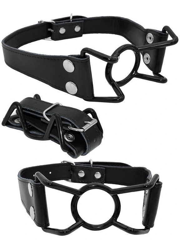 La lani?re en similicuir s’ajuste de fa?on g?n?reuse avec la boucle pour passer ? toutes les tailles de t?te. Le diam?tre interne de l’anneau fait moins de 4 cm, donc nos amis tr?s (trop) bien membr?s ne passeront pas au travers. Des jeux de langue, d’injection directe et d’?claboussement sont toutefois possibles.
