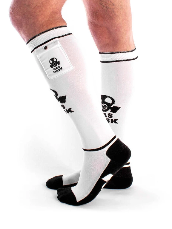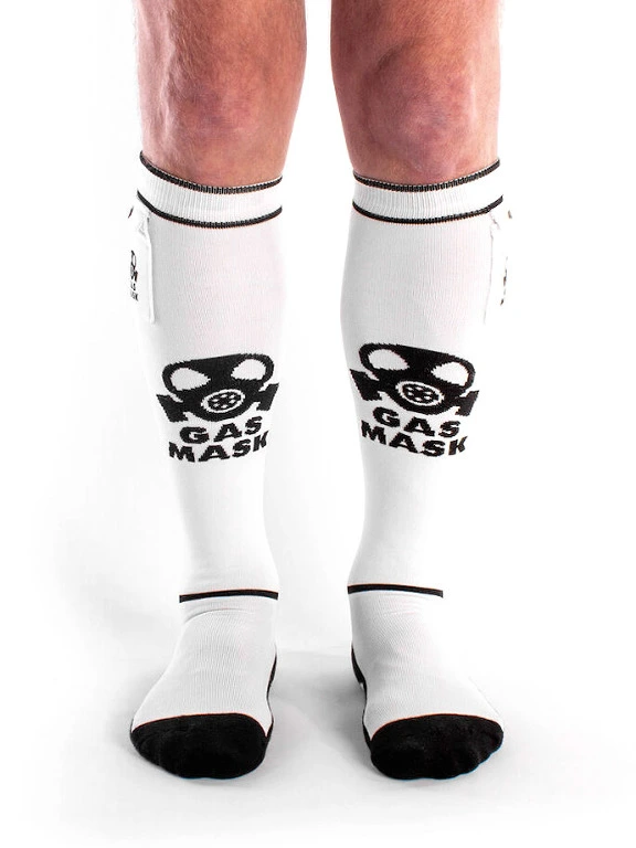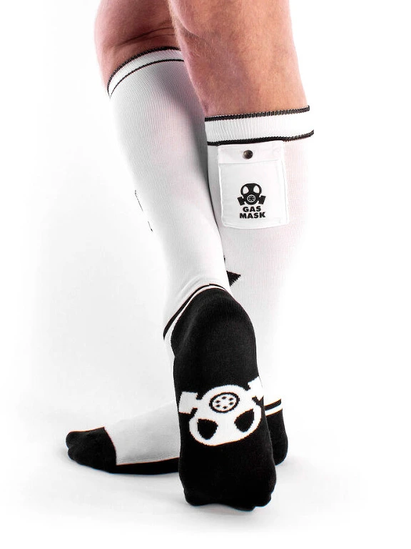 Portez ces chaussettes hautes « Gas Mask » de Brutus en blanc et montrez votre c?t? sexy et f?tichiste ainsi que votre pr?f?rence pour les activit?s amusantes.