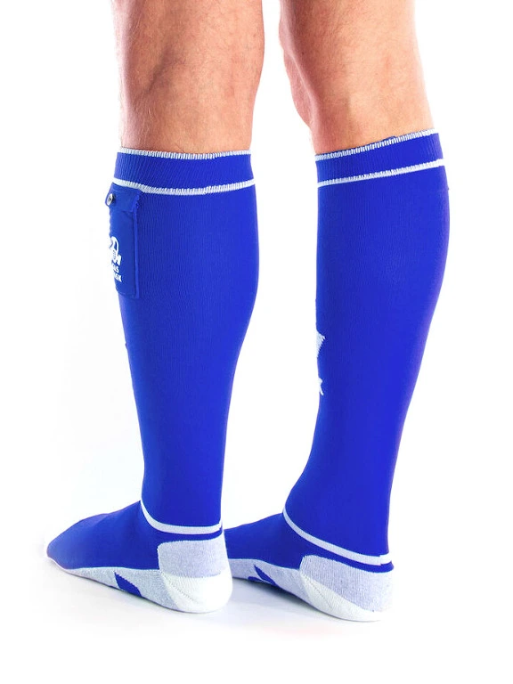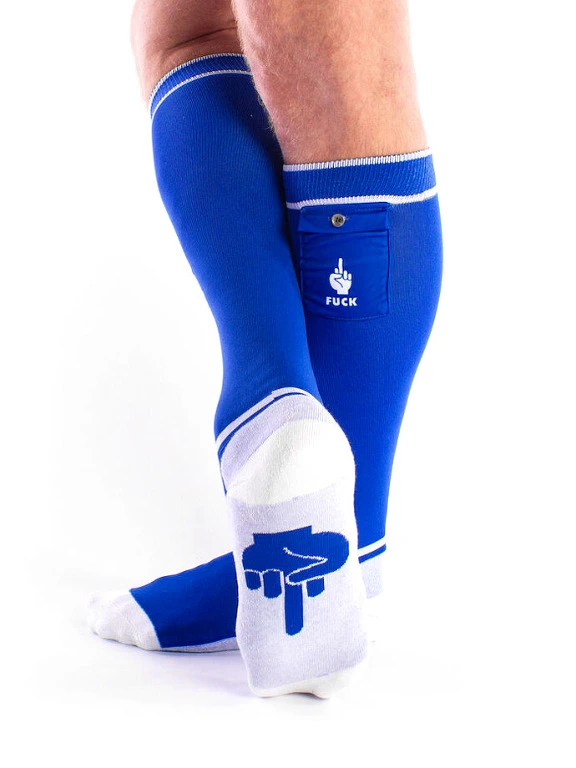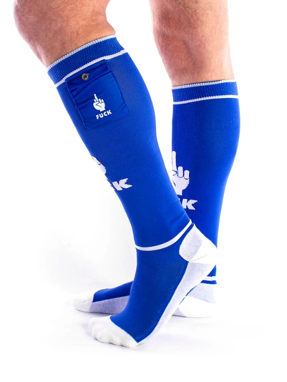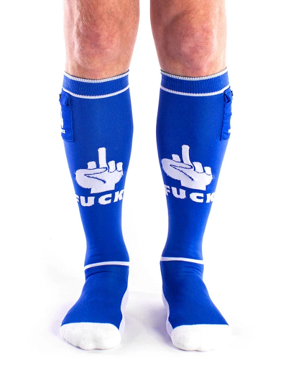 Montrez votre amour pour la sc?ne f?tichiste avec les nouvelles chaussettes « Fuck » Party Socks de Brutus, de couleur bleu royal, parfaites pour n’importe quelle tenue et permettant aux gens de savoir que vous aimez le sexe oral si vous respectez le Hanky code
