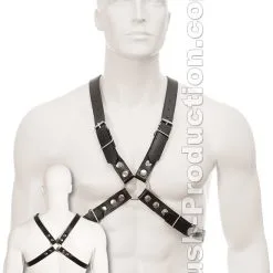Ce harnais pour torse a une forme de X, tenue id?ale pour les clubs et les parades. Les sangles sont lisses des deux c?t?s et cousues tout le long du bord.