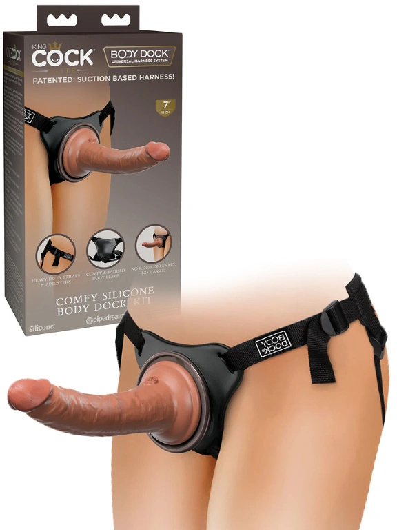 Procurez-vous le nouveau harnais Strap-On brevet? avec la technologie Body Dock et profitez du kit confortable en silicone qui convient ? toutes les tailles.