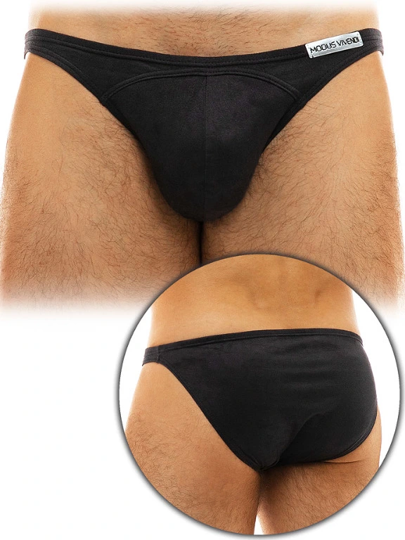 La mati?re en velour du slip noir Low Cut Suede de Modus Vivendi rend ce slip super doux au toucher et ? porter pour profiter de corps ? corps torrides avec votre partenaire.