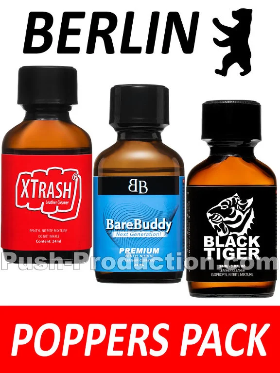 Trois super poppers ? petit prix, c’est le pack Berlin Poppers avec Xtrash, BareBuddy et Black Tiger, des poppers aux ar?mes ?rotiques pour des sensations g?niales !