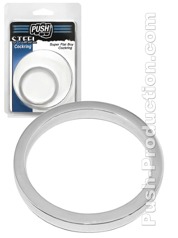 Fait en acier inoxydable avec une finition de grande qualit?, les bords de ce cockring en inox Super Flat Boy de Push Steel sont l?g?rement arrondis et la surface est finement polie.