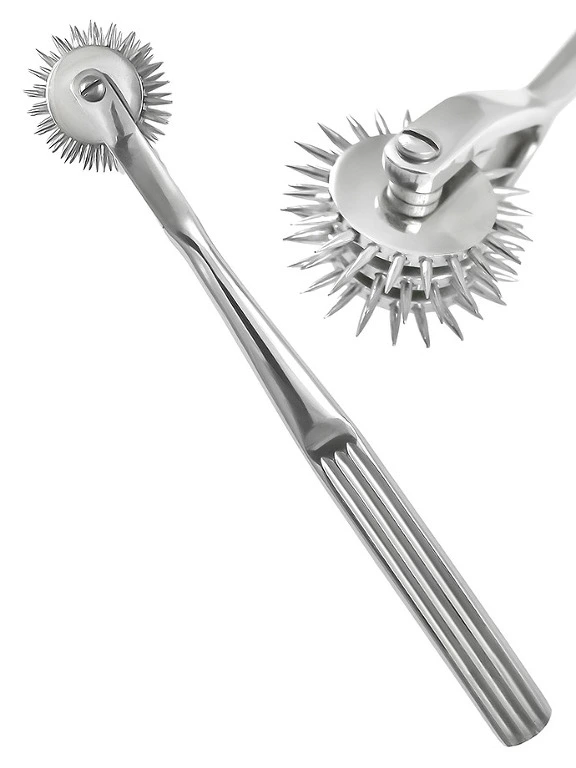 Cet outil de stimulation a l’air plus dangereux qu’il ne l’est. Ses petites aiguilles ont ?t? d?velopp?es pour d?contracter les nerfs de la personne mass?e, et servent d?sormais sur la sc?ne BDSM d’instrument de stimulation ou de torture, d?pendant de votre humeur. Vous pouvez utiliser la roue sur n’importe quelle partie de la peau, des mamelons et du gland.