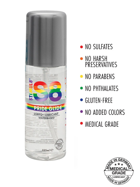 Avec sa formule longue dur?e et son flacon sp?cial pour le mois de la fiert?, le lubrifiant Stimul8 Pride ? base d’eau va vous procurer des pr?liminaires et ?bats encore plus plaisants !